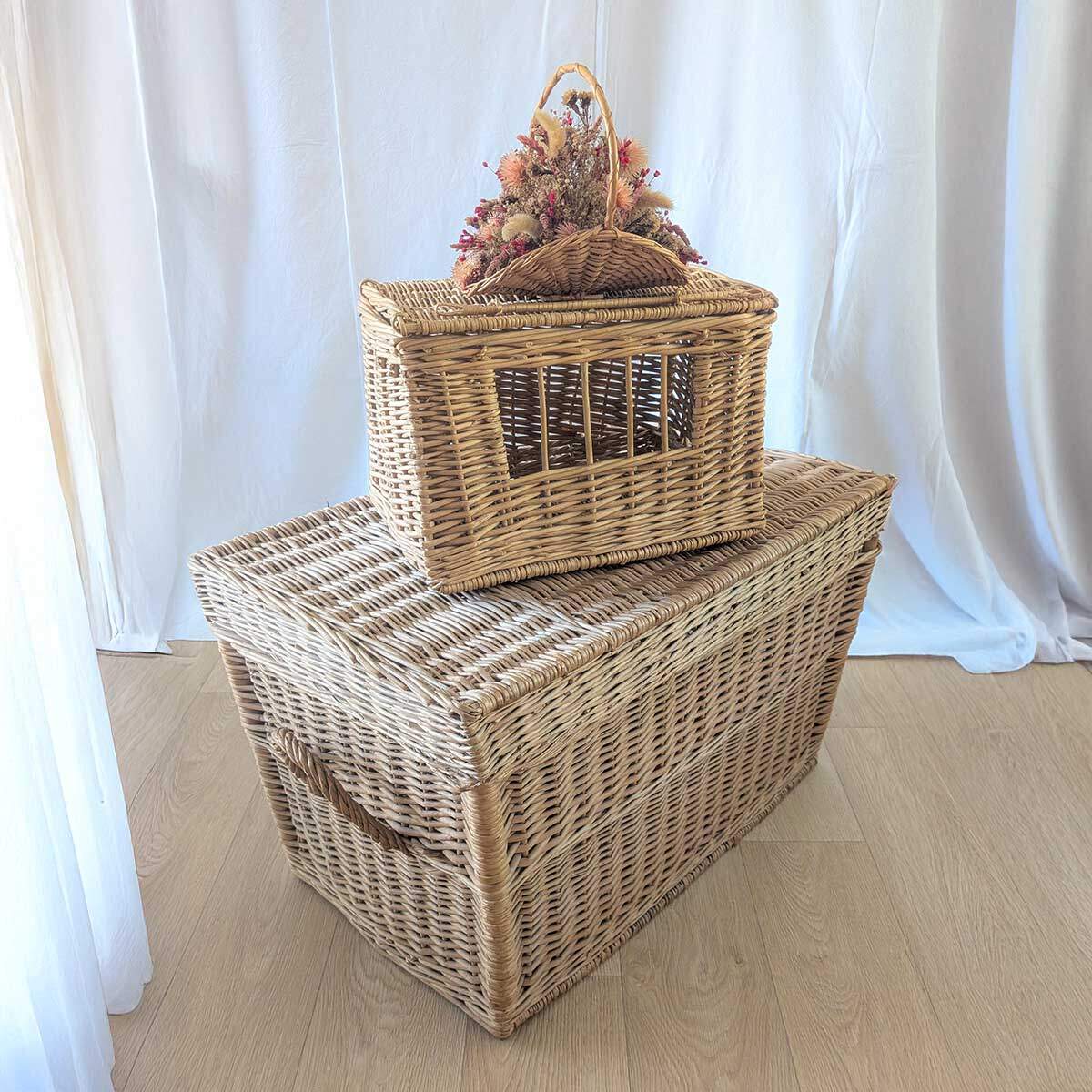 Brocante : Accueil / Boutique / Location décoration et mobilier ancien / Grande Malle en Osier – Location