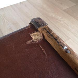Manques à signaler : une fixation en métal au niveaux des poignées (droite et gauche), une baguette en bois sur la face arrière.