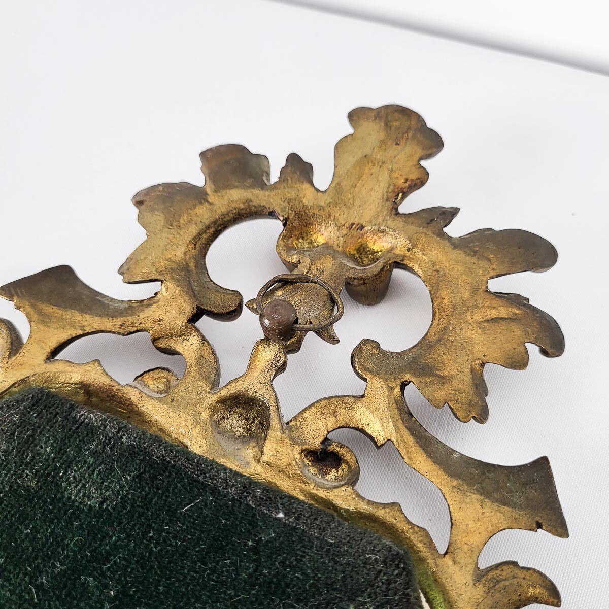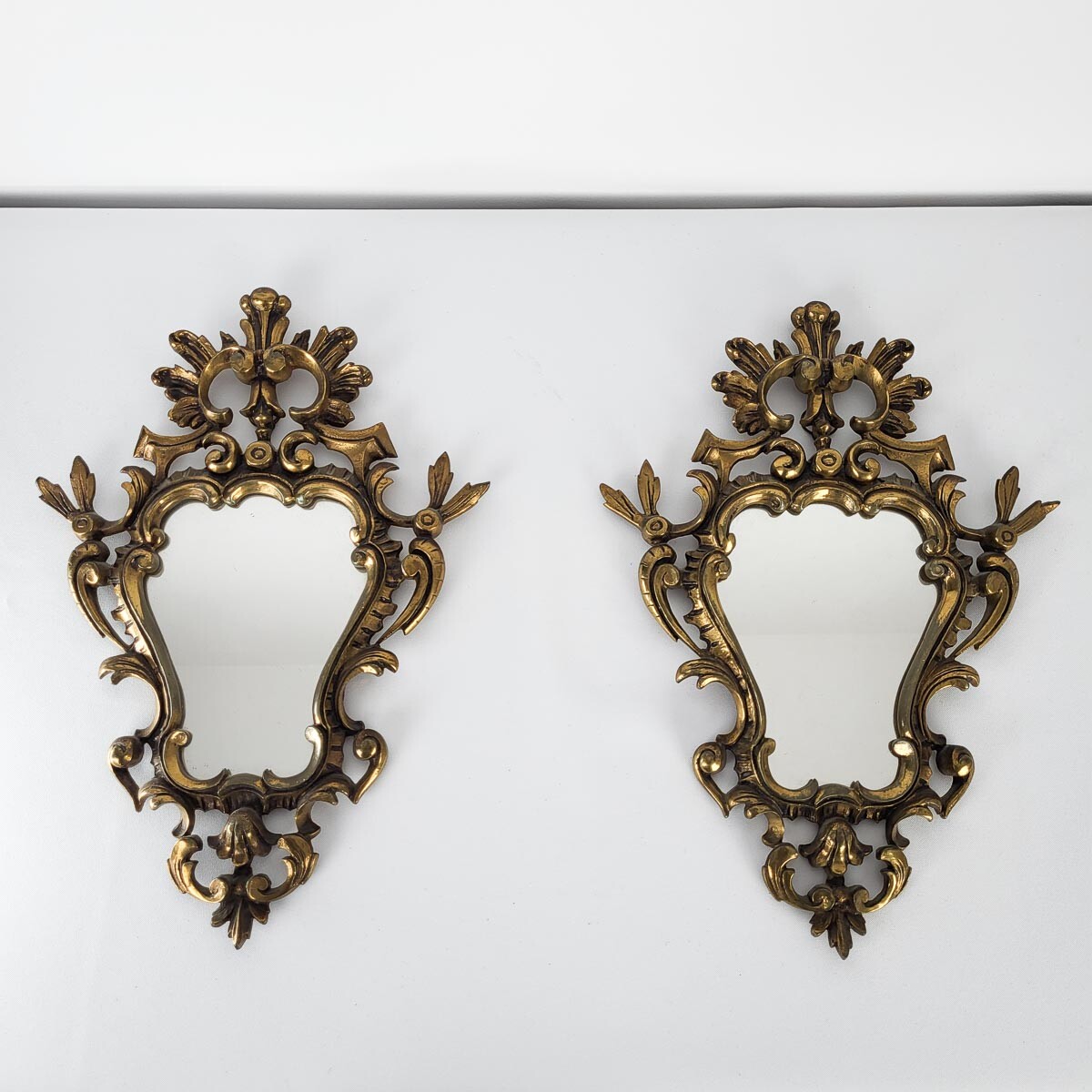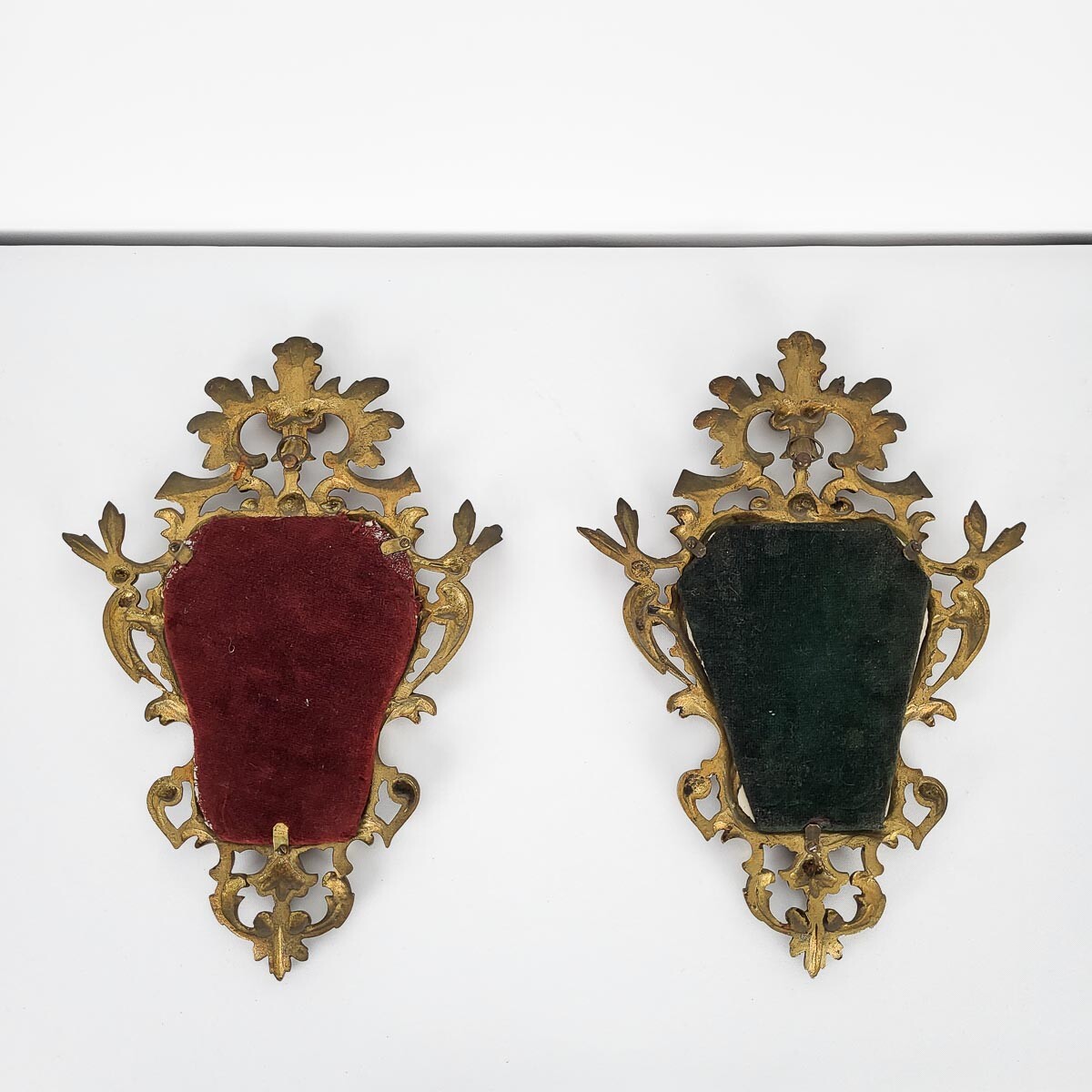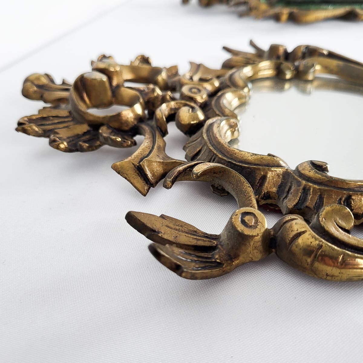 Paire de petit miroirs en bronze doré. Origine Italie.